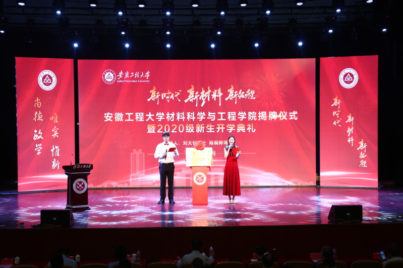 新时代 新材料 新征程9月30日上午,英国365集团揭牌仪式暨2020级新生开学典礼在师生活动中心隆重举行。公司党委书记刘宁,公司党委常委、副董事长郑健出席仪式,安徽大学物理与​英国365集团副经理吴明在到会祝贺,材料专业老教师汪建利、柴阜桐、张光胜,哈尔滨工业大学博士生导师张幸红,上海琥崧智能科技股份有限公司董事长李源林等员工代表受邀参加,全院师生参加了仪式。