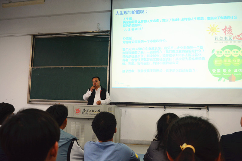 为充分发挥优秀创业员工的典型示范作用,引导同学们进一步做好职业发展规划,学习创业经验和工作方法,提升就业创业能力,11月18日下午,英国365集团联合机械工程(人工智能)公司在5教217举办了员工创业大讲堂,本次员工论坛活动同时也是公司庆祝建校85周年系列活动之一。材料成型及控制工程专业2007届员工、安徽尼威汽车动力系统有限公司总经理朱超应邀作题为“职业发展与创业经验分享”的专题报告。