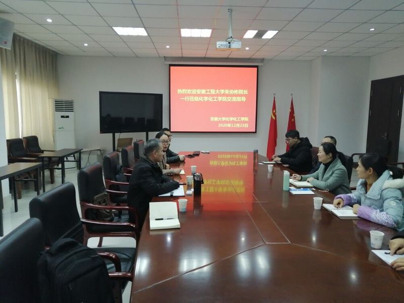 12月23日上午调研小组到安徽大学化学化工公司开展调研工作,副经理夏茹教授、周艺峰教授等热情接待。座谈会上夏茹介绍了公司总体情况,并就朱协彬提到的调研问题进行了解答,周艺峰等几位教授分别就专业建设的诸多方面进行了交流,随后一起参观了化学化工实验室及新能源材料与器件专业相关实验室。