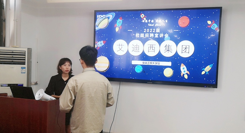 招聘会伊始,集团人资副总监杨艳播放了企业宣传视频,接着详细介绍了集团的企业文化、发展前景、核心产品、研究方向及人才培养计划等内容,她对同学们提出的问题进行了详细解答,同时也表达了集团对人才的欢迎。现场还组织了笔试与面试。