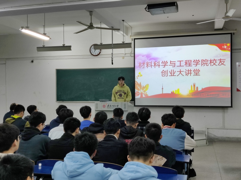 公司2020届材料科学与工程专业员工、安徽文词教育科技有限公司总经理吴宗富介绍了自己的在校期间学习以及创业经历。他围绕“创业者需具有的条件”、“创业项目的选择”等问题,讲述了他创业过程中面对的种种艰难困苦,引导同学们如何依靠胆识和魄力、拼搏的斗志,稳步走向成功的历程,他也鼓励在校生要尽早设定目标,积极参加公司科研活动,发挥材料学科的专业优势,提升自己的专业本领,做好自己的职业规划。
