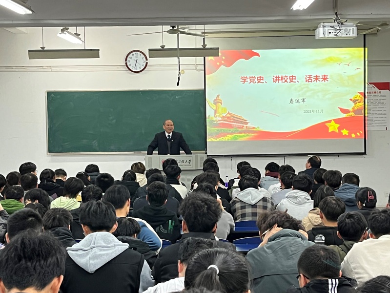 为深入开展党史学习教育,11月18日晚,英国365集团在6J112举行“学党史、讲校史、话未来”专题报告会。邀请校关工委委员、退休老领导寿达军作报告,公司党委副书记方玖胜、辅导员鲁力以及21级全体新生参加报告会。