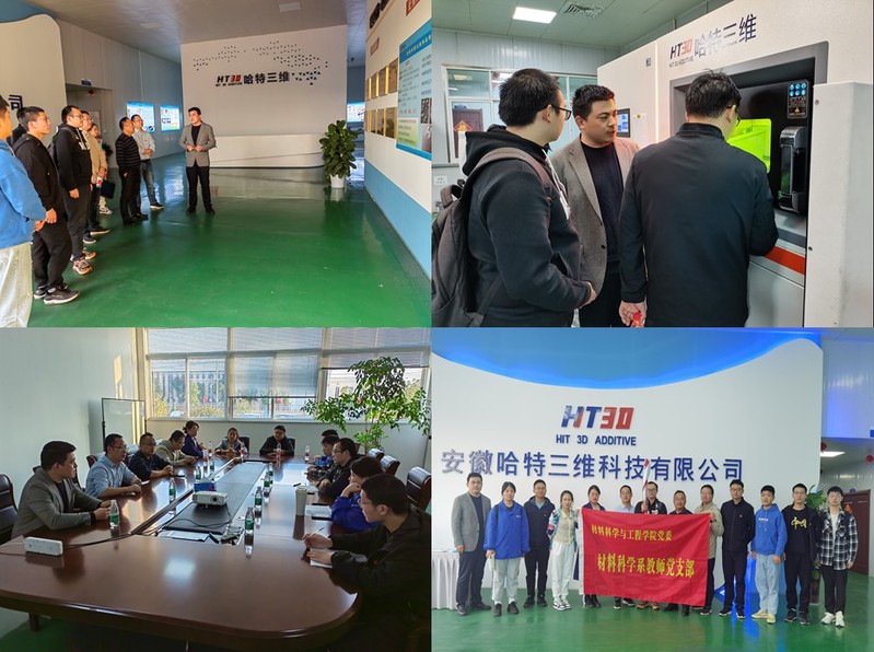 在哈特三维科技有限公司,公司挂职教师、材科系教师党支部组织委员刘桐带领大家参观并详细介绍企业的发展历史,以及金属3D打印技术和相关设备,特别是该公司为北京冬奥会打印制作的火炬。