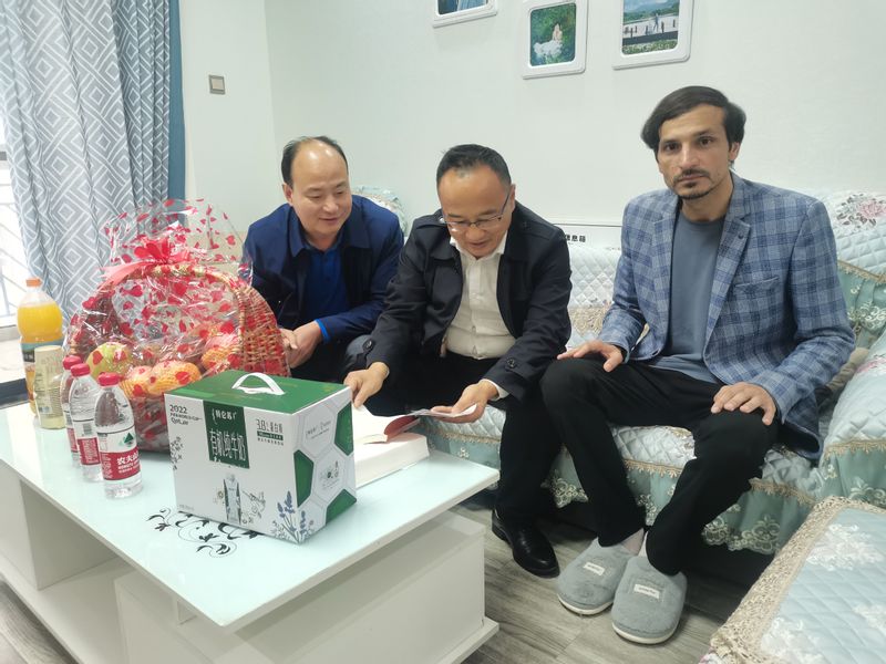 11月8日下午,公司党委书记郭广春、党委副书记、分工会主席方玖胜、外籍博士后联系人谢爱文来到外籍博士后阿塔家中走访,了解其来校后的工作、生活、学习情况,宣讲党的二十大精神。