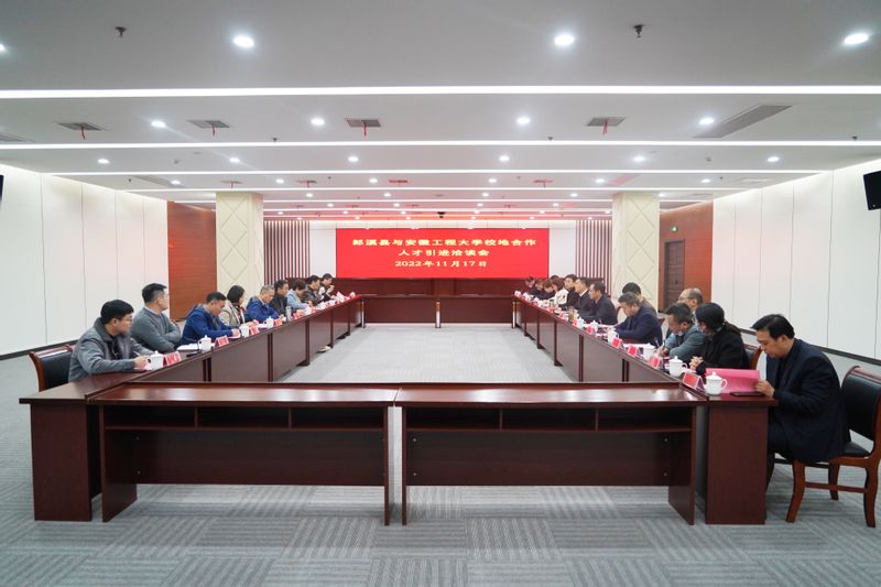 五个公司负责人简要介绍了优势专业、研究方向及员工就业情况。郎溪县重点产业企业负责人就人才、产学研需求与公司开展互动交流。