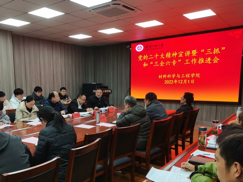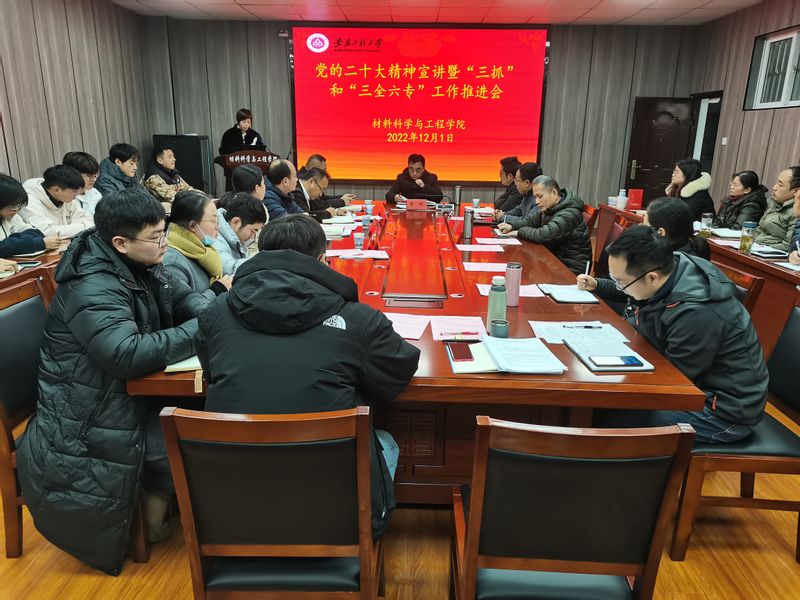 材科系教师党支部书记、系主任陶锋,材加系教师党支部书记、系主任段园培,组织员陈希,团委书记陶冶分别汇报了本科生导师制、“四帮四导”、党员积分制管理、“三全六专”品牌项目建设情况。