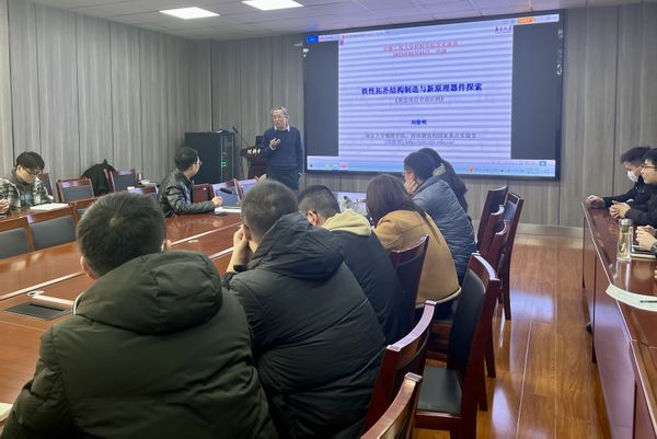 报告会上,刘俊明以国家自然科学基金申请为背景,做题为“铁性拓扑结构制造与新原理器件探索”的学术报告。他以通俗易懂的方式生动地为在场师生讲述其团队是如何打破对铁电材料与铁磁材料的固有认识并重塑畴结构,展示了从不可能到可能的科研历程。另外,研究注重从机理设计走向原型制造,将铁性拓扑结构应用于信息存储、磁电探测、磁性半导体、界面功能等磁电耦合新材料。