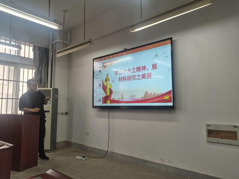 支部书记陶锋对本次党日活动总结点评,为徐东教授和李天宇老师在科研和本科生进团队方面所做的工作和经验分享点赞,同时呼吁同学们加强与老师们沟通交流,积极参与到老师的科研实践当中,享受材料研究之美。
