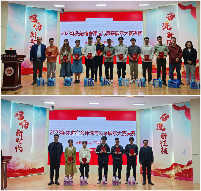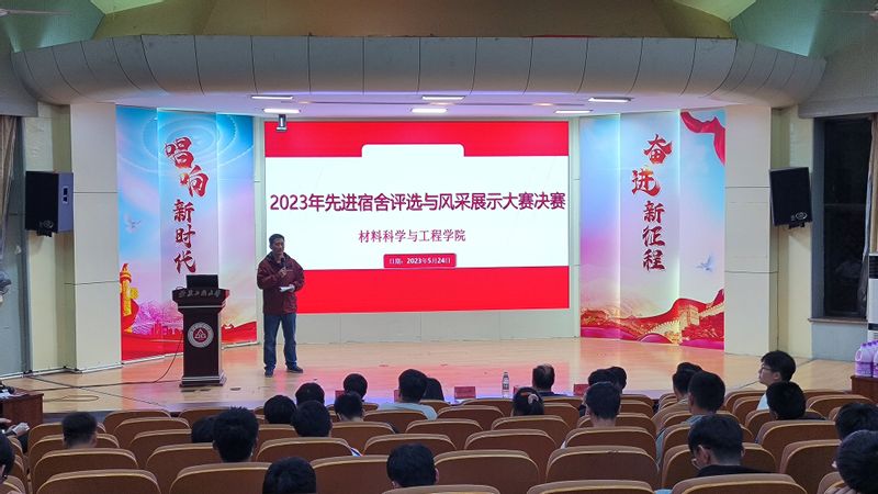 经过前期全院所有宿舍申报、辅导员审核、实地检查考核等环节,最终15个宿舍脱颖而出进入决赛。决赛现场,各宿舍通过宿舍宣传片、PPT汇报等方式结合“三全六专”育人实践工作组织、参与的各类活动来展示各自宿舍的风格与特点。汇报中既有浓厚的学习氛围、每周的神山夜跑、丰富的户外游戏等,无不展示出了材料学子朝气蓬勃、风华正茂的精神面貌。中场互动环节,主持人提出了关于“三全六专”、宿舍新态、值日通风、宿舍成员一览表制度等相关问题,同学们竞相回答,引起现场观众热情互动。最终,结合网络投票、现场展示,男18#517等10间宿舍获评先进宿舍,女12#301等5间宿舍获评优秀宿舍。