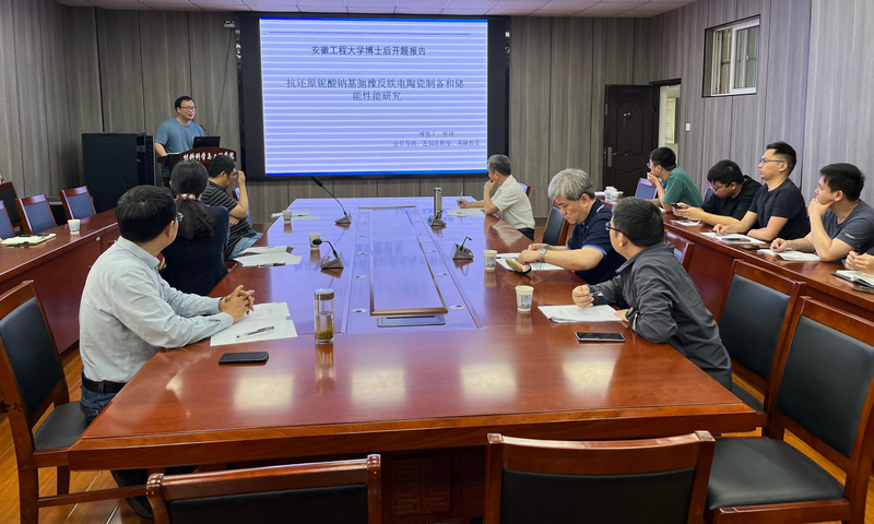 张祎以“抗还原铌酸钠基弛豫反铁电陶瓷制备和储能性能研究”为题分别从选题背景与意义、研究思路、研究内容、工作计划、创新点等方面进行了详细汇报。专家组认真听取了张祎的汇报,肯定了研究课题选题的新颖性和前沿性,以及研究方案的可行性,对研究目标、研究内容等方面进行了具体指导,并提出了很多建设性的建议。最后专家组一致同意通过张祎的博士后进站开题工作。