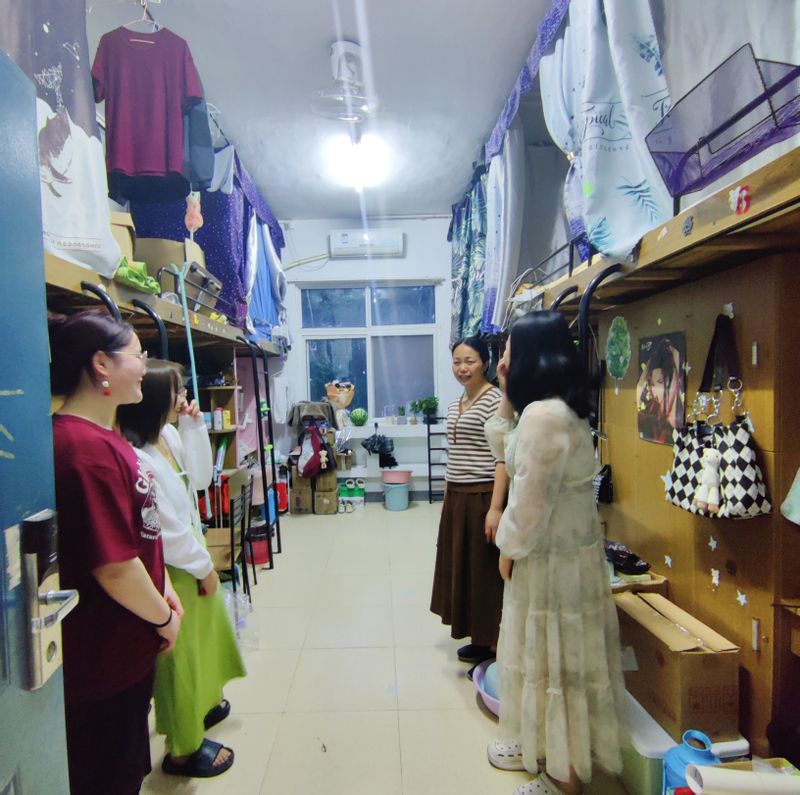 走访过程中,院领导老师对各个寝室的具体情况进行调查了解和关心。“签了什么工作单位?”“毕业后落脚哪个城市?”“未来有什么打算?”,每走一间寝室,老师们都关切地询问毕业生们的工作问题及对未来的想法和计划,并提醒同学们遇到问题可及时向公司、老师求助,公司会为毕业生们提供最大的帮助和支持。