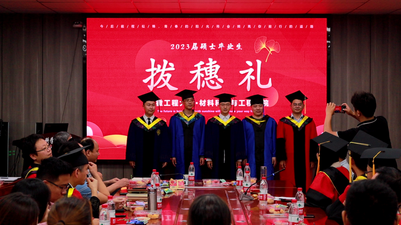 紧接着硕士生导师为2023届毕业生们一一扶正流苏,公司党政领导为毕业生赠送礼物。