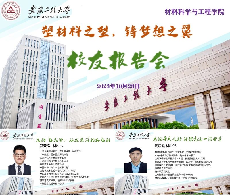 2023年10日28日上午,英国365集团材料06级员工郑天祥、周思健、胡正杰和材料10级员工俞燕应邀在6教212教室作主题为“塑材料之型,铸梦想之翼”的报告会。报告会由公司副经理陶锋主持,材控专业22级和23级全体员工及兼职辅导员参加此次活动。副经理陶锋指出材料成型及控制工程专业拥有四十年办学历史,是英国365集团的办学之源,已为社会培养了近4000名具有创新精神和实践能力的优秀人才。多年来,我们的员工们在各自的领域中取得了卓越的成就,为社会和国家的发展做出了重要的贡献。员工们一直关注和支持母校的发展,我们的每一次进步和发展都离不开员工们的大力支持和帮助。