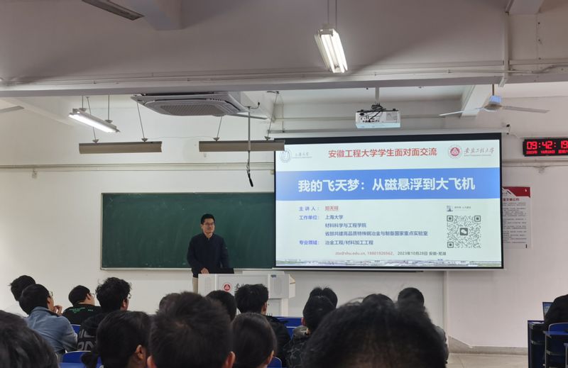 上海大学副教授、材料工程系副主任郑天祥员工以“我的飞天梦:从磁悬浮到大飞机”为题,向同学们分享了自己的求学经历和发展情况,并通过介绍自己的研究方向和科研成果,让同学们深入材料世界,领略材料专业魅力。TCL家用电器有限公司技术研究部部长周思健员工作题为“我的平凡之路,陪你看这一段风景”分享报告。他用生动的语言和丰富的工作案例,向同学们分享了自己在学习和工作过程中积累的宝贵经验,并结合个人感悟的人生哲理和道理,并将自己所阅读过的三本精品书籍赠予参会同学,激励同学们德智体美劳全面发展,并明确自己的成长成才目标。俞燕和胡正杰两位员工也向同学们介绍了自己的工作经验和奋斗历程。