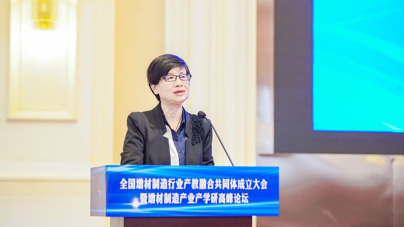 苏国红代表公司致辞,她介绍了公司的发展历史、发展内涵以及公司未来的发展目标。她表示,作为全国增材制造行业产教融合共同体发起单位,将进一步推动行业组织、院校、科研机构、上下游企业的深度交流,希望通过平台建设,推进产教深度融合、协同发展。