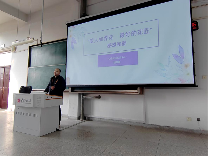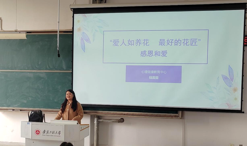 11月29日下午,公司在6J215举行“12.5”心理健康节之感恩讲座,校心理健康教育中心专职心理咨询师钱圆圆应邀作专题讲座,公司党委副书记方玖胜、全体辅导员、公司心理部成员、国家奖助学金获得者以及大一新生参加活动。