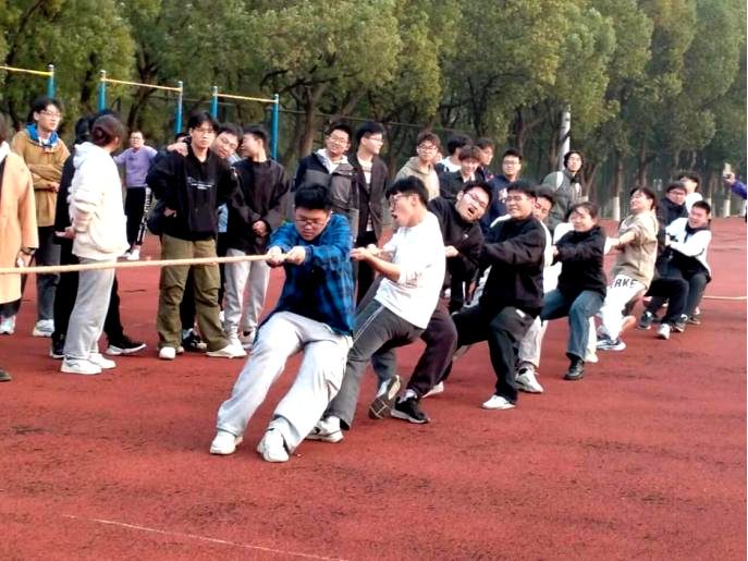 赛前,裁判员们严阵以待,队员们积极热身,相互加油打气,商讨战术。随着裁判员一声哨响,比赛正式开始。参赛队员们手握麻绳,咬紧牙关,凝心聚力,全力以赴。与此同时,场外观众呐喊声此起彼伏,比赛现场如火如荼。比赛在夕阳的余晖中落下帷幕,经过激烈的角逐,材科222班取得一等奖的优异成绩。