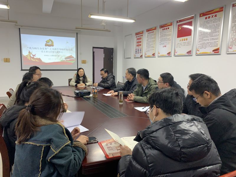 材料加工系党支部书记段园培带领全体党员学习《习近平总书记在第十个国家宪法日之际作出的重要指示》、《关于建立领导干部应知应会党内法规和国家法律清单制度的意见》和《韩俊在安徽师范大学调研时的讲话精神》以及公司、公司关于本科生导师制的相关文件,通报了公司基层教学组织负责人培训会上关于本科生导师工作汇报的主要内容。