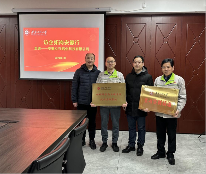 1月19日,公司一行走进芜湖市湾沚区安徽立兴铝业科技有限公司,与公司总经理朱健勇,行政副总兼党支部书记陶跃进洽谈人才培养和就业实训相关事宜。公司一行与企业签订了就业实践、实习实训协议,并举行授牌仪式。方玖胜、朱健勇共同为“英国365集团就业实践基地”揭牌;陶锋、陶跃进共同为“英国365集团实习实训基地”揭牌。