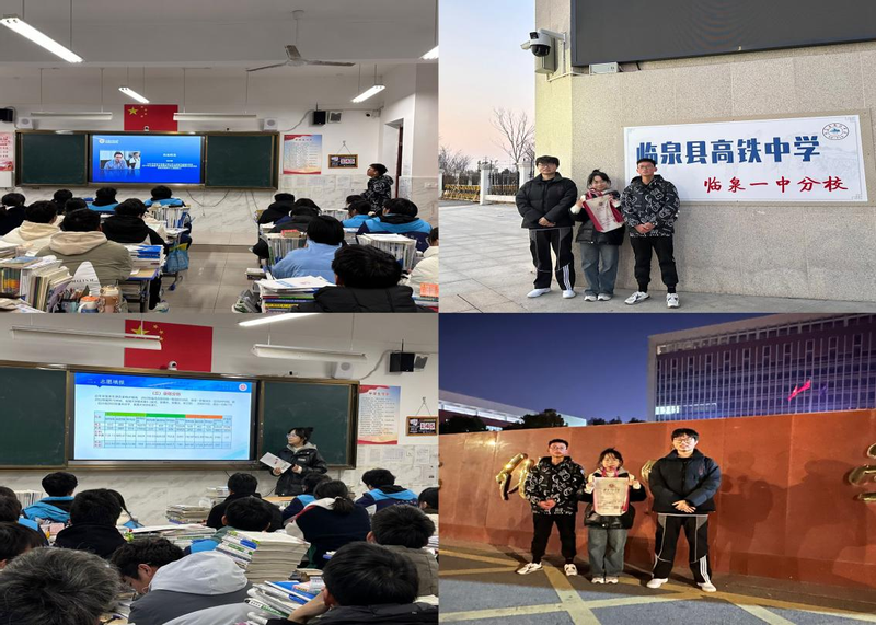 新能源材料231班徐福兴团队集中前往安徽省临泉县高铁中学、安徽省临泉汇英中学、安徽省临化中学开展回母校招生宣传活动。期间得到高中母校老师的支持,顺利进入各个高中班级,开心地与学弟学妹们分享大公司园的点点滴滴,鼓励高中学子们树立目标,努力拼搏。