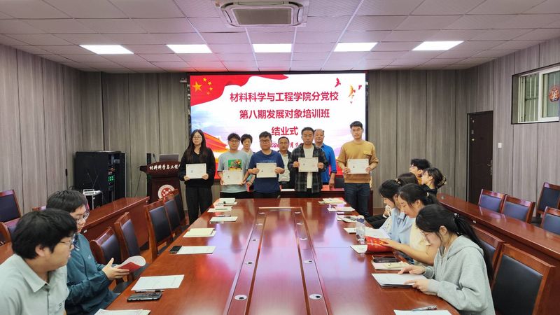 会上,周冬梅总结本期培训班工作,汇报培训班学习实践以及学员表现情况,总结培训管理经验,明确今后努力方向。材科221班胡洁同学作为学员代表发言,分享了在培训班的收获,并表示今后将继续发挥员工骨干的先锋模范带头作用,争取早日入党。陈希宣读了培训班结业和优秀学员的决定,主席台领导老师颁发结业证书,并向受表彰的优秀学员颁发荣誉证书。