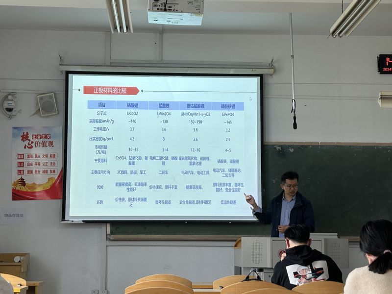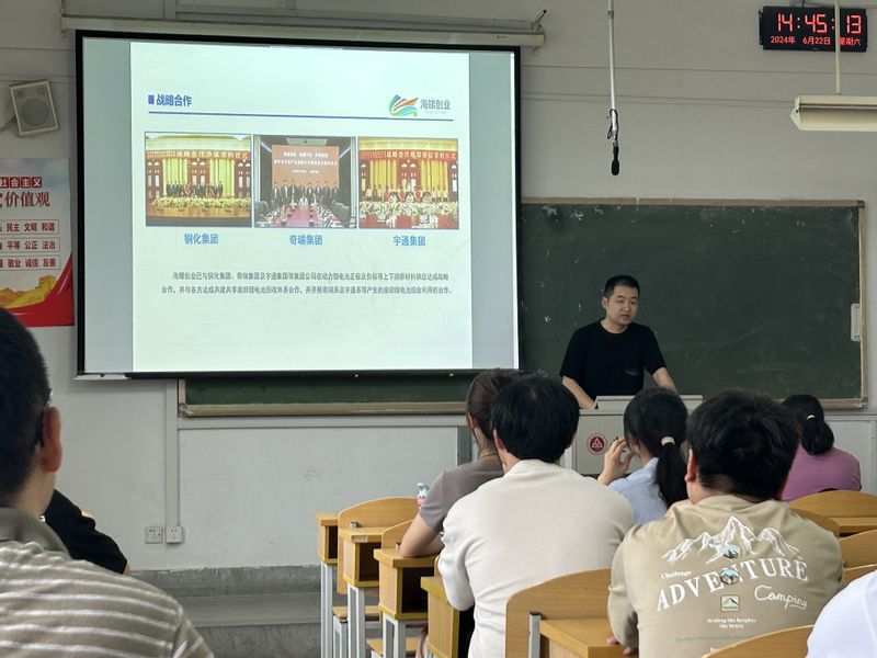 6月22日,安徽海创新能源材料有限公司(以下简称“海创新能源”)总经理助理盖腾和安徽海创循环科技有限公司生产部长李洋走进公司课堂,为“海创班”同学们带来了精彩纷呈的专业讲座。此次活动旨在将行业最新发展动态和技术创新融入教学,帮助员工建立对新能源材料行业的宏观认识,并探讨未来的挑战与机遇。材料科学与工程公司新能源材料系全体教师参加了观摩学习。