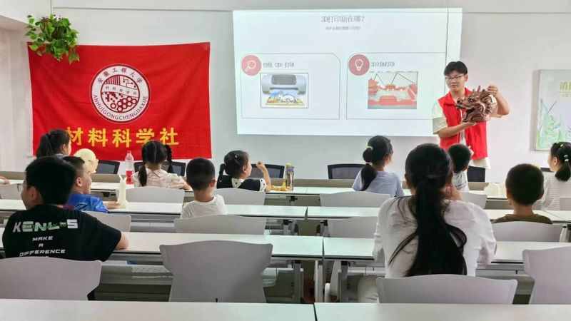 团队成员还为孩子们展示了城堡、雕塑、牙套、龙首等3D打印产品,让孩子们近距离接触3D打印技术。小朋友们对此产生极大兴趣,主动提问并参与互动,在团队成员的细心解答下,小朋友们了解到3D打印技术在医学、航空航天、汽车制造、建筑等领域的广泛应用。活动最后,团队成员还给小朋友们赠送了材料科学社提前制作好的戒指、印章、龙等3D打印小礼品。