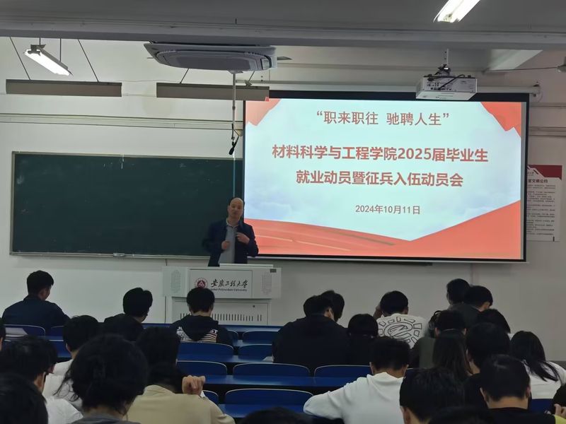 鲁力进行毕业生就业工作培训,详细介绍了安徽省老员工就业系统的操作流程和注意事项,确保每位毕业生都能熟练掌握系统,为接下来的求职之路打下坚实基础。赵成婧详细解读了最新的征兵入伍政策,包括报名条件、选拔流程、优惠政策等方面,强调工科毕业生具有专业对口的优势,入伍后发展潜力大。三名退役复学员工分享了入伍经历与收获,号召大家积极报名入伍,提升自我,报效祖国。