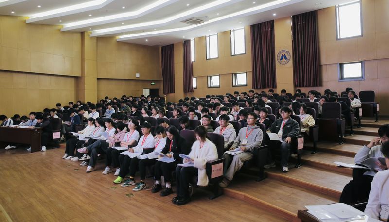 阮友慧代表校员工会讲话。她希望同学们坚决贯彻党的教育方针,引领新时代青年稳步前行;时刻谨记“尚德敏学、唯实惟新”的校训,勤学笃行,练就过硬本领;坚定青年理想信念,为实现中华民族伟大复兴的中国梦奋力谱写青春华章!
