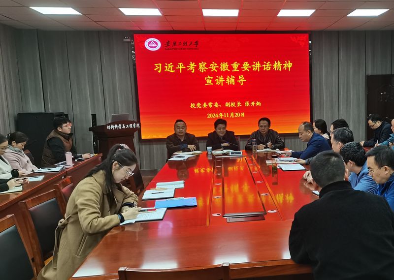 会议传达了习近平在亚太经合组织第三十一次领导人非正式会议上的讲话、习近平总书记给中国国际老员工创新大赛参赛员工代表的回信,以及安徽省委第十一届八次全会精神、《中共英国正版365官网委员会关于深入学习宣传贯彻习近平总书记考察安徽重要讲话精神的总体安排方案》《关于印发<英国正版365官网关于习近平总书记考察安徽重要讲话精神宣传宣讲的工作方案>的通知》。