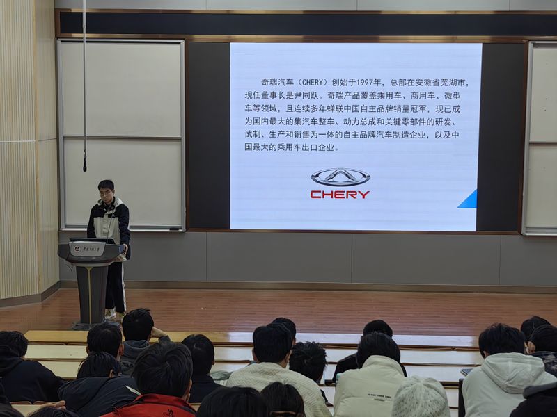 双方交流环节,刘琪介绍了公司科研队伍及产学研情况;陶锋介绍公司老员工创新创业训练中心以及推进共建创新创业工作室相关意见和建议。奇瑞研发交叉科学研究部何克勤、技术中心主任师骆建丽、研发总院人事经理董文婷分别围绕产学研合作、新材料技术突破、人才招聘需求等方面进行交流。与会2025届毕业生代表现场投递简历并与公司人事经理进行了面对面交流。