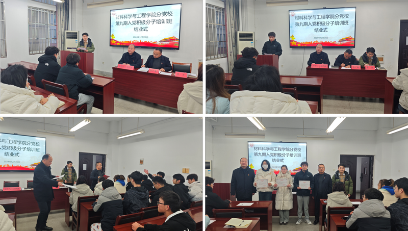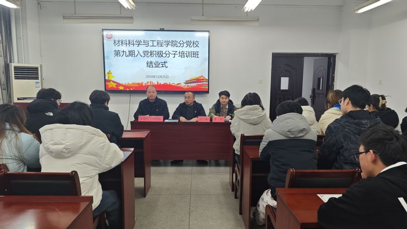 12月25日,公司分党校第九期入党积极分子培训班结业式在B203举行,公司党委书记郭广春出席并讲话,培训班班主任鲁力、全体学员参会。结业式由公司党委副书记方玖胜主持。