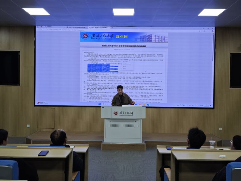 鲁力通报了目前公司的就业、考研情况,介绍了毕业生就业系统的使用方法以及签约流程,同时分享了求职经验以及多种求职渠道,例如大型双选会、专场招聘会、行业性组团招聘会、线上招聘、24365网站等新媒体平台。