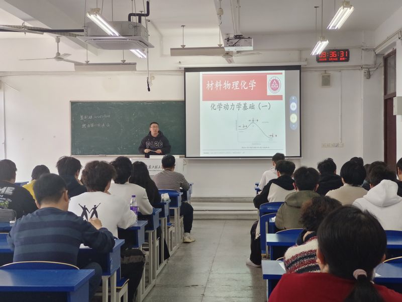 周聪老师本次讲课内容为《材料物理化学》中“化学动力学基础”的内容,上课对象为公司材料科学与工程专业2023级员工。他首先回顾了化学热力学的内容,并阐明热力学与动力学的关系,建立起热力学与动力学的知识衔接。随后讲解了反应速率及速率方程、基元反应和质量作用定律两节内容。周聪老师在教学过程中深入浅出,运用生活化教学策略,通过“人体内蔗糖和氧气反应”“甲烷燃烧”“碘钟反应”等多个实际案例,有效激发员工的学习兴趣,使复杂理论变得生动易懂,并采用“问题链”教学法,通过递进式提出问题,引导员工逐步构建知识体系。