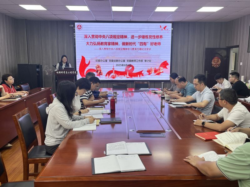 校人事处吴敏副处长围绕“锲而不舍落实中央八项规定精神,推进作风建设常态化长效化”、“提高政治站位,正确履行经济责任,增强风险防范意识”、“弘扬教育家精神,争做新时代‘大先生’”等三个方面,开展深入贯彻中央八项规定精神学习教育专题纪法宣讲,通报典型案例。