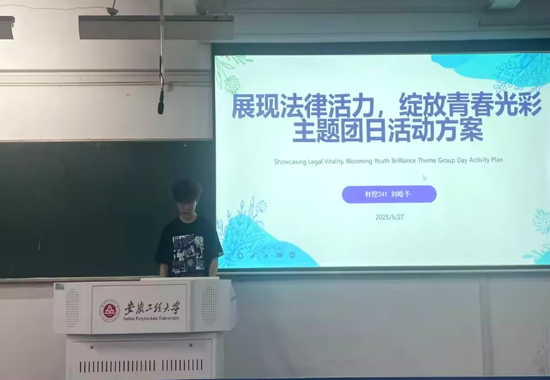 活动伊始,刘皓予向全体同学深入介绍本次示范性主题团日的活动背景与目标,并详细阐述了前期筹备工作。随后,由班级团支部精心制作的两部法律主题视频成为活动焦点。