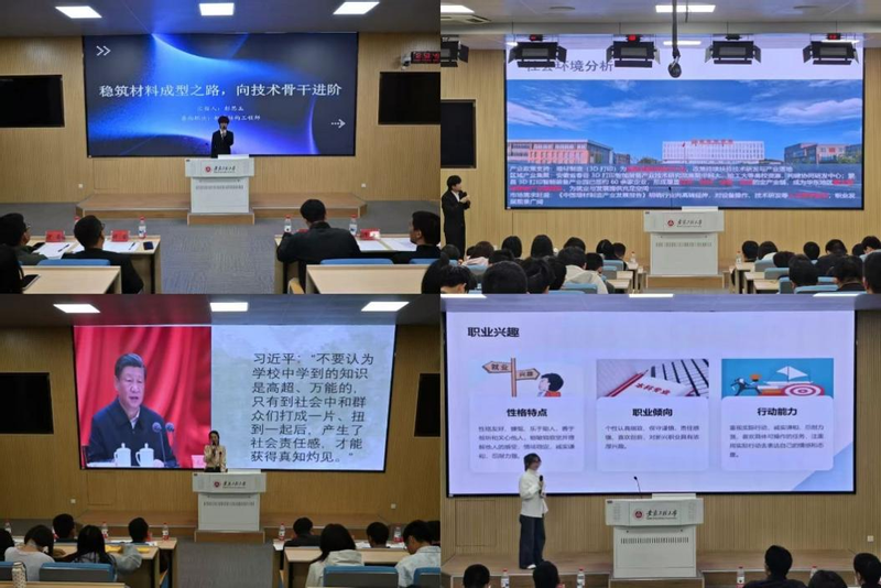 决赛设置成长、就业两个赛道,包含PPT演讲与展示、评委问答两个部环节。风采展示环节,13位参赛选手们立足专业特色,从个人分析、职业目标、未来规划及计划实施等方面进行了详细阐述。他们将个人理想融入国家发展战略,以详实的数据分析和清晰的逻辑阐述,展现各自精心规划的职业生涯蓝图。问答环节,选手们认真回答评委提问,并表示会进一步调整和完善规划。